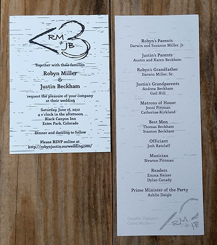 A couple of save-the-date cards and wedding invitations I designed for friends.